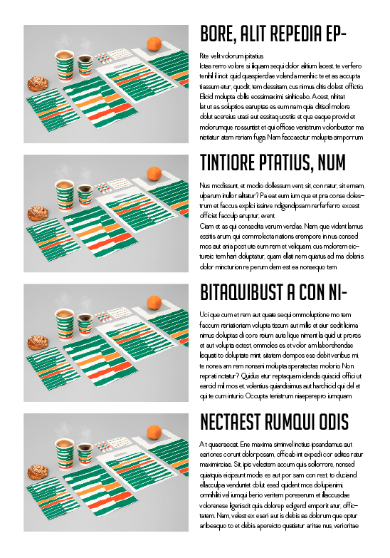 Initial ideas for the fonts were that they would be be sans serif so easy to read whatever the point size is and against whatever stock colour. I tried a variety of different aesthetics for each title and body font. For the title font I also tried a couple a little more abstract 'Vibe' & 'Akka' as they stand out and would work well as titles, however I found that a tall thin font worked the best. I decided upon 'BigNoodleTitling'. For the body font I went for 'Quaver Sans'.